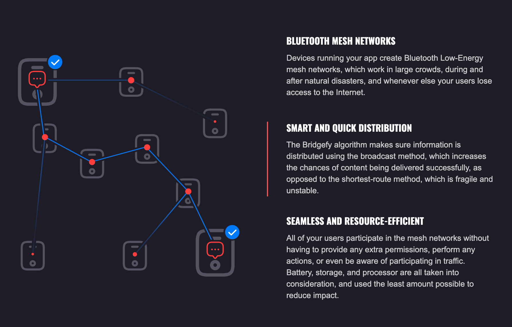Bridgefy keeps people connected by providing a mobile messaging application that works without internet or phone data. It’s software development kit easily integrates into iOS and Android apps, thus making them available to users, without the internet. Bridgefy increases engagement, reduces server usage, and can create new revenue streams fortexting, dating, gaming, ride-hailing, and many other types of apps. https://bridgefy.me/