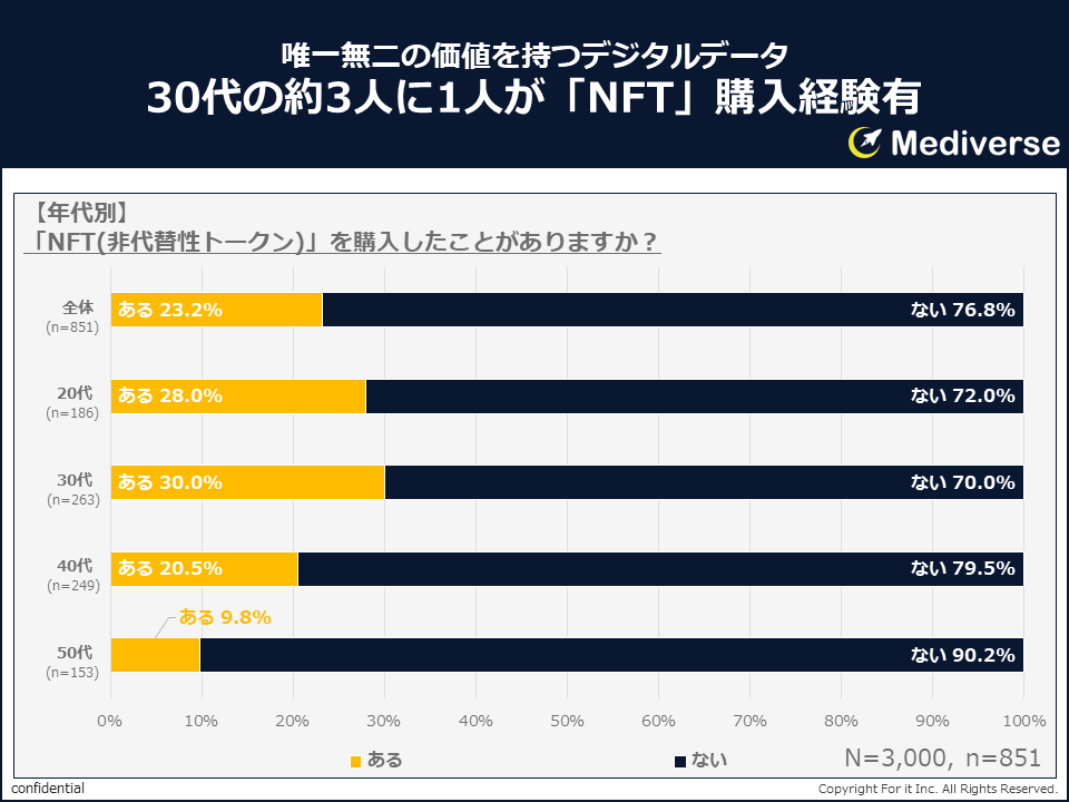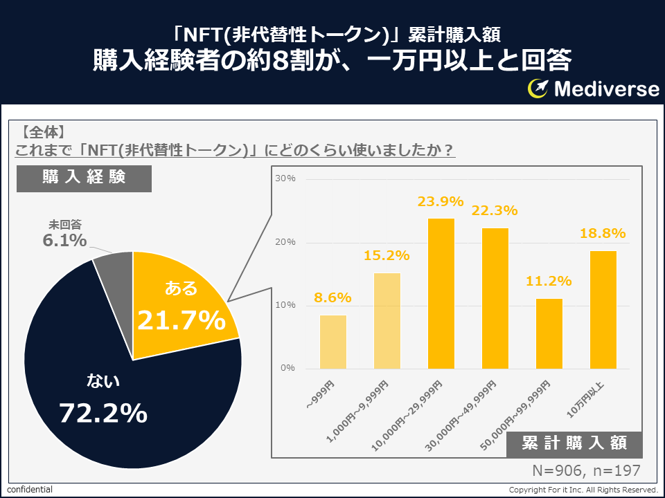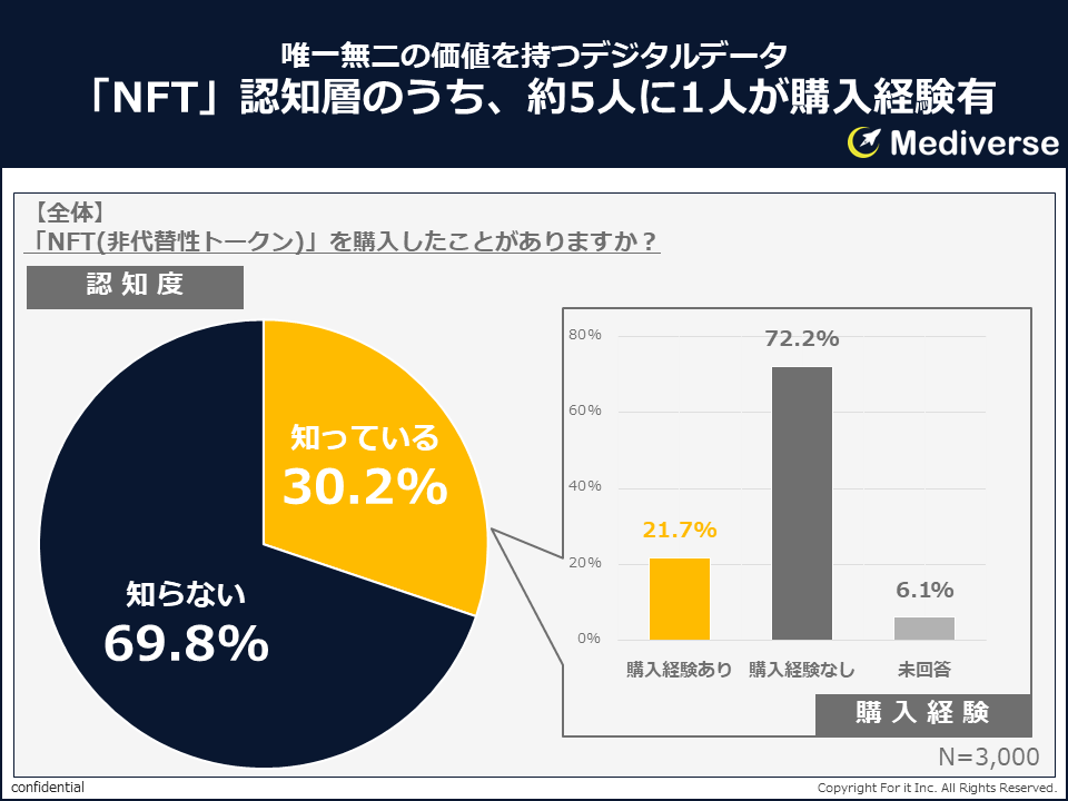 株式会社フォーイットが運営するWeb3メディア「Mediverse(メディバース)」は、『NFT(非代替性トークン)に関するアンケート』を独自で行いましたので、その調査結果をお知らせいたします。