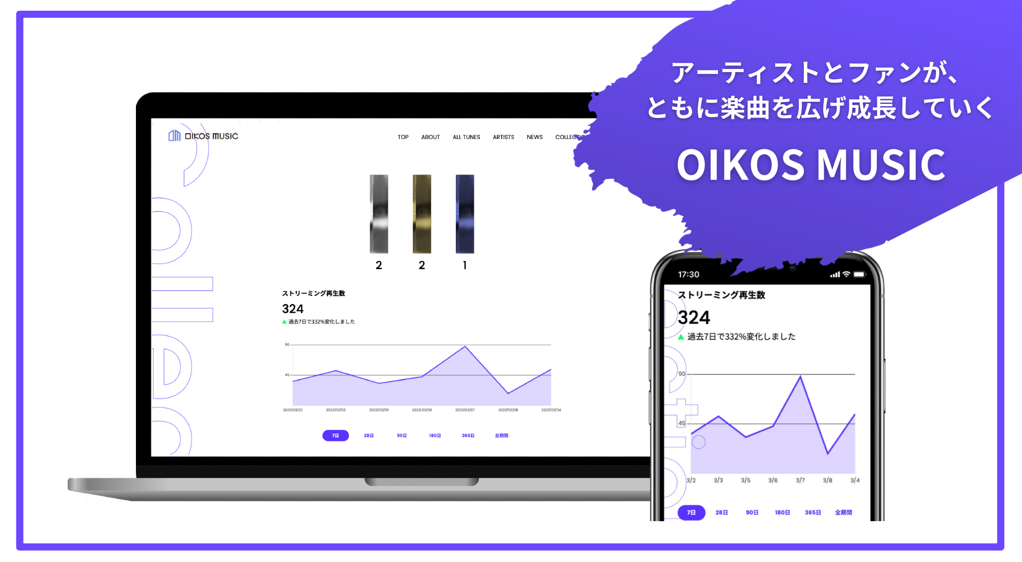 このたびOIKOS MUSICのサイトを大幅にアップデートしました。追加される主な機能は、楽曲の再生数や収益額などがわかるダッシュボードの追加、OIKOS保有者への収益分配の開始、OIKOS保有者への限定コンテンツ提供機能の拡充の3点です。今回のアップデートにより追加された各機能は、アーティストとファン・リスナーとの関係性強化を形作る重要な機能です。
