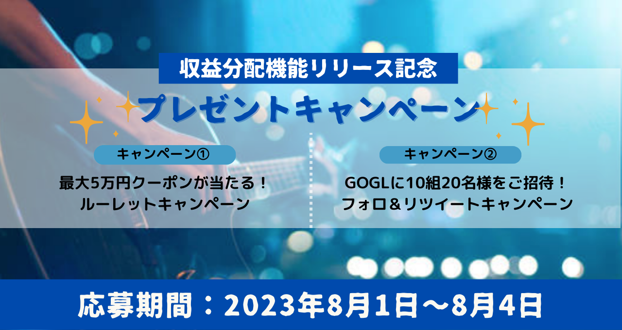 さらに、収益分配機能リリースを記念して、キャンペーンを開催します。OIKOSをお得にご購入可能な、最大で5万円クーポンが当たるルーレットキャンペーンや、OIKOS MUSIC主催ライブ「GOT OIKOS GET LIVE Vol.2」に10組20名様を招待するフォロー&リツイートキャンペーンなどもご用意しておりますので、ぜひご参加ください。