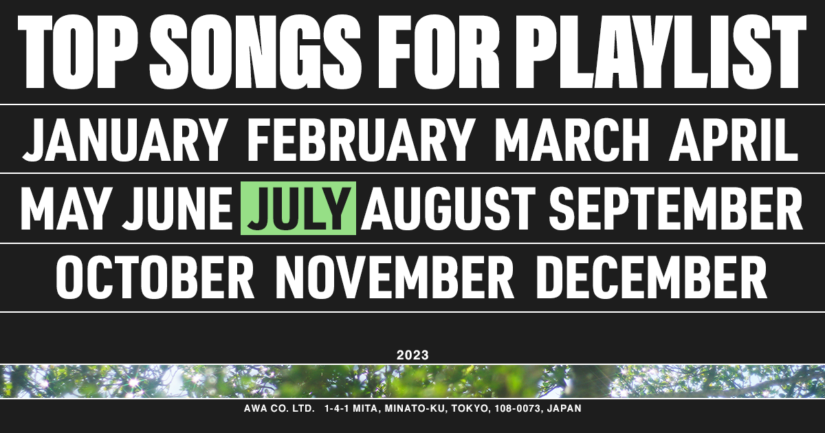 AWA株式会社(本社:東京都港区、代表取締役CEO:冨樫晃己)が運営する、サブスクリプション型(定額制)音楽ストリーミングサービス「AWA(アワ)」は、2023年7月1日(土)から7月31日(月)までに、ユーザーが作成したプレイリストへ採用された楽曲を集計し、7月度の『プレイリスト採用楽曲ランキング』を発表いたしました。