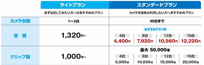 ライトプランの場合、遠隔監視、AIカメラ分析による動体検知、通知機能などカメラの基本機能を初期費用27,280円(税込)、月額利用料金1,320円(税込)〜でご利用いただけます。