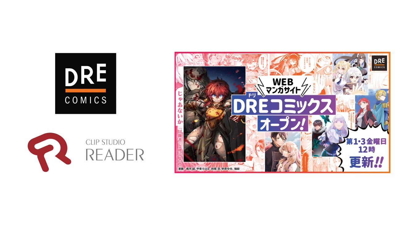 「DREコミックス」は、毎月第1・3金曜日12時に最新話が更新される完全無料のWEBコミックサイトです。また、コミックレーベルでもあり、自社媒体での連載や各電子書店での販売を行いながら、紙書籍の単行本なども発売していきます。「DREノベルス」のコミカライズを主としながら、オリジナルコミックの制作にも注力しています。