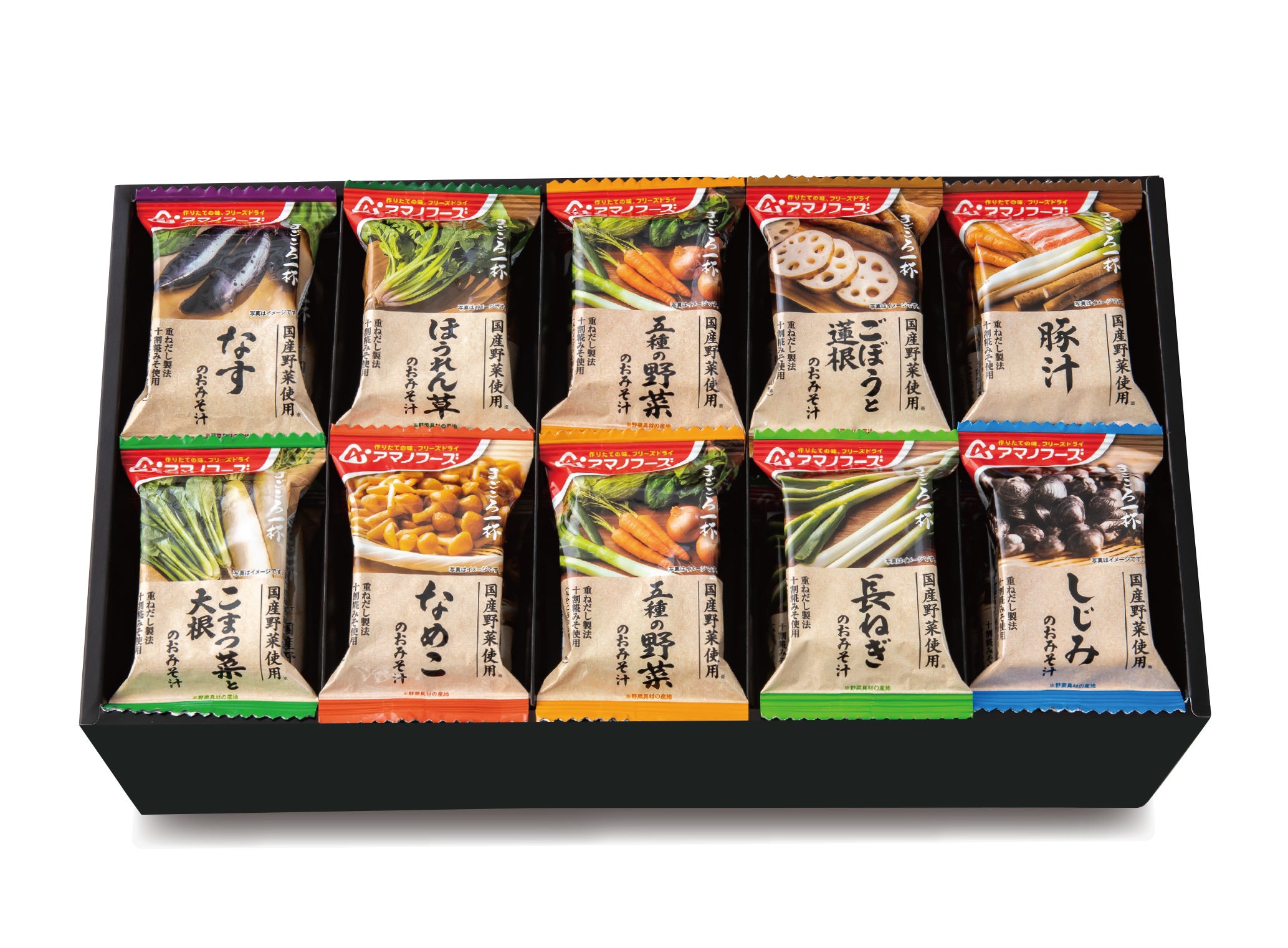 瀬戸内海特有の温暖な気候と豊かな自然に恵まれているため、岡山を代表する「白桃」や「シャインマスカット」、アマノフーズが誇るフリーズドライの「お味噌汁」が人気の返礼品です。