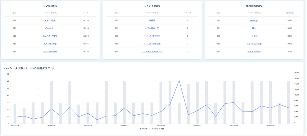 投稿に使用されたハッシュタグから効果のあるものを発見できます。