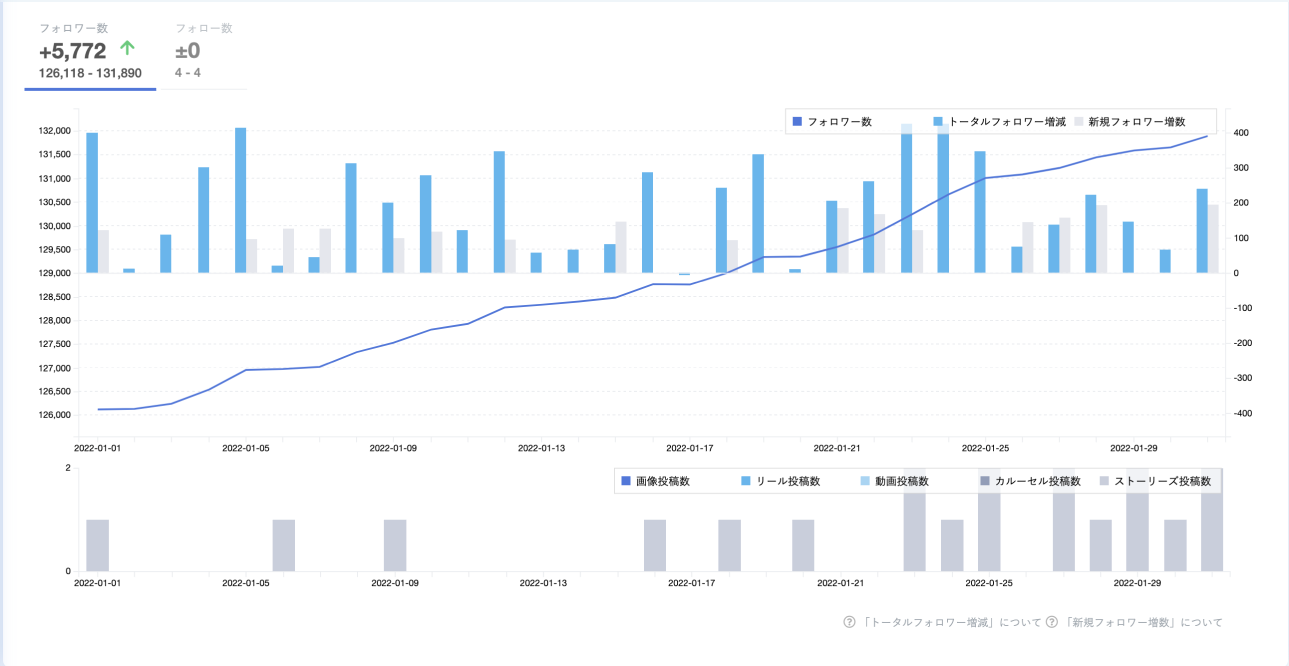 登録アカウントのフォロワー数の推移を取得、表示する機能です。