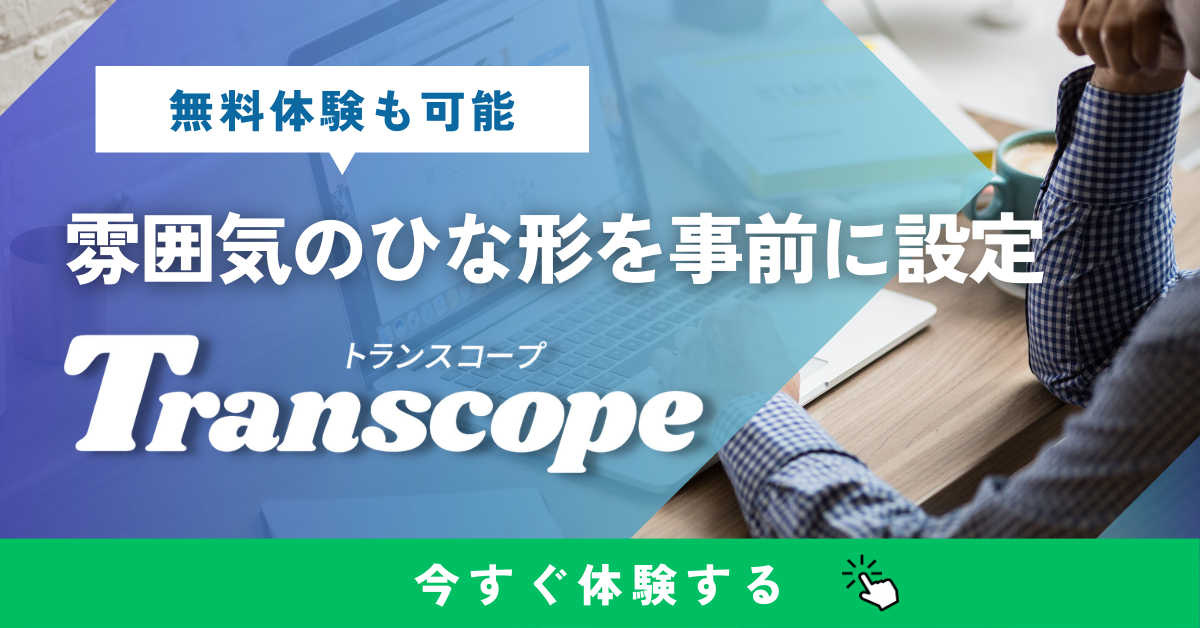 無料プランもございますので、まずは無料プランからTranscope(トランスコープ)をお試しいただくことも可能です。
