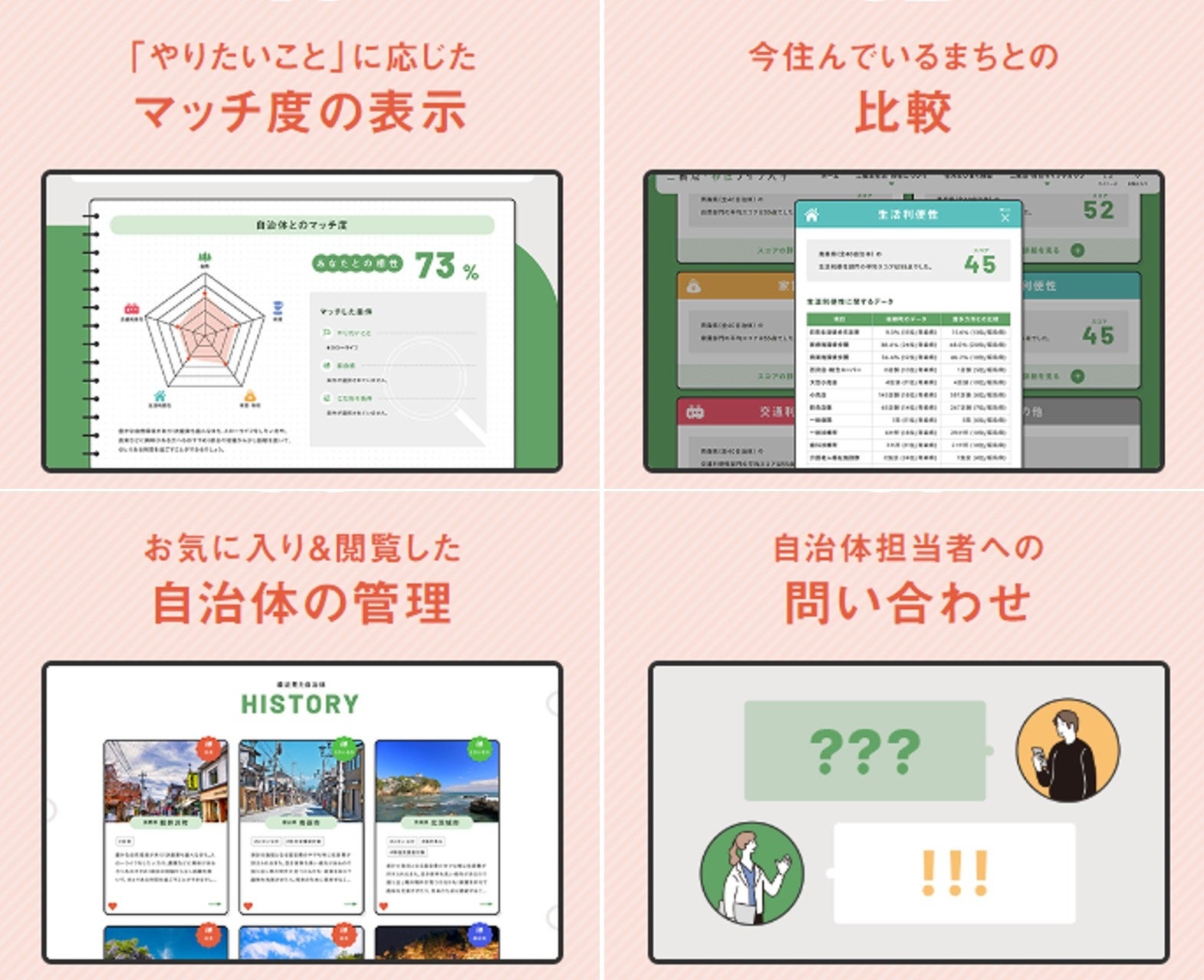 このようなお声を頂き、我々のサイト上にて双方のミスマッチを軽減しながら、ユーザーさまがこれまで知ることが無かった市町村の認知につなげるポータルサイトを考案いたしました。また、本サイトは全国すべての市町村の情報を網羅しているため、中立的な立場で利用者へぴったりの町の情報をお届けします。