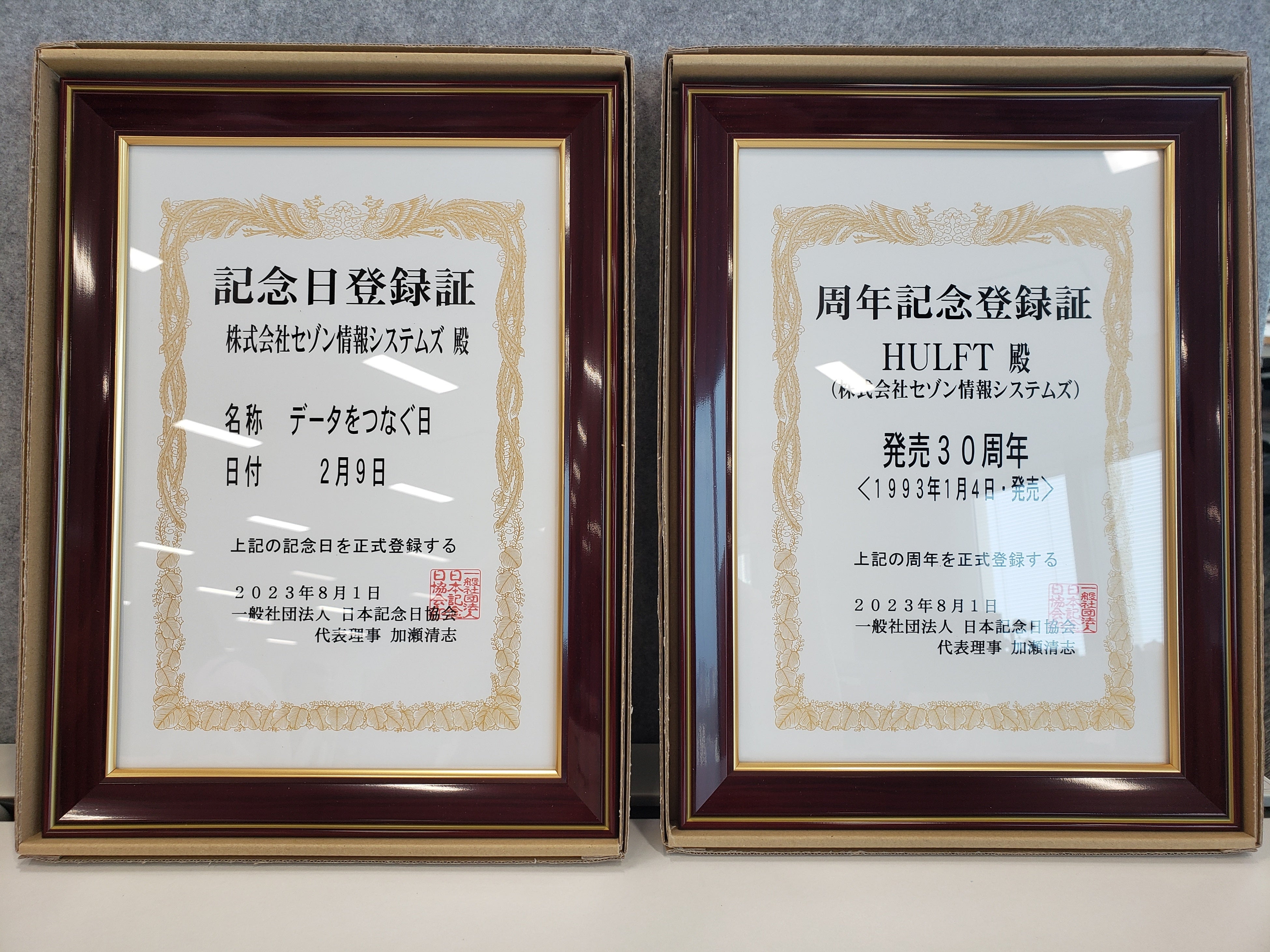 株式会社セゾン情報システムズ(本社:東京都港区、代表取締役 社長執行役員CEO:葉山 誠、以下「セゾン情報システムズ」)は、今年の「HULFT発売30周年記念日」および2月9日「データをつなぐ日」が、一般社団法人日本記念日協会(本部:長野県佐久市、代表理事:加瀬 清志、以下、「日本記念日協会」)より正式に記念日登録の認定を受け、本日セゾン情報システムズ本社にて「記念日登録証」が授与されました。