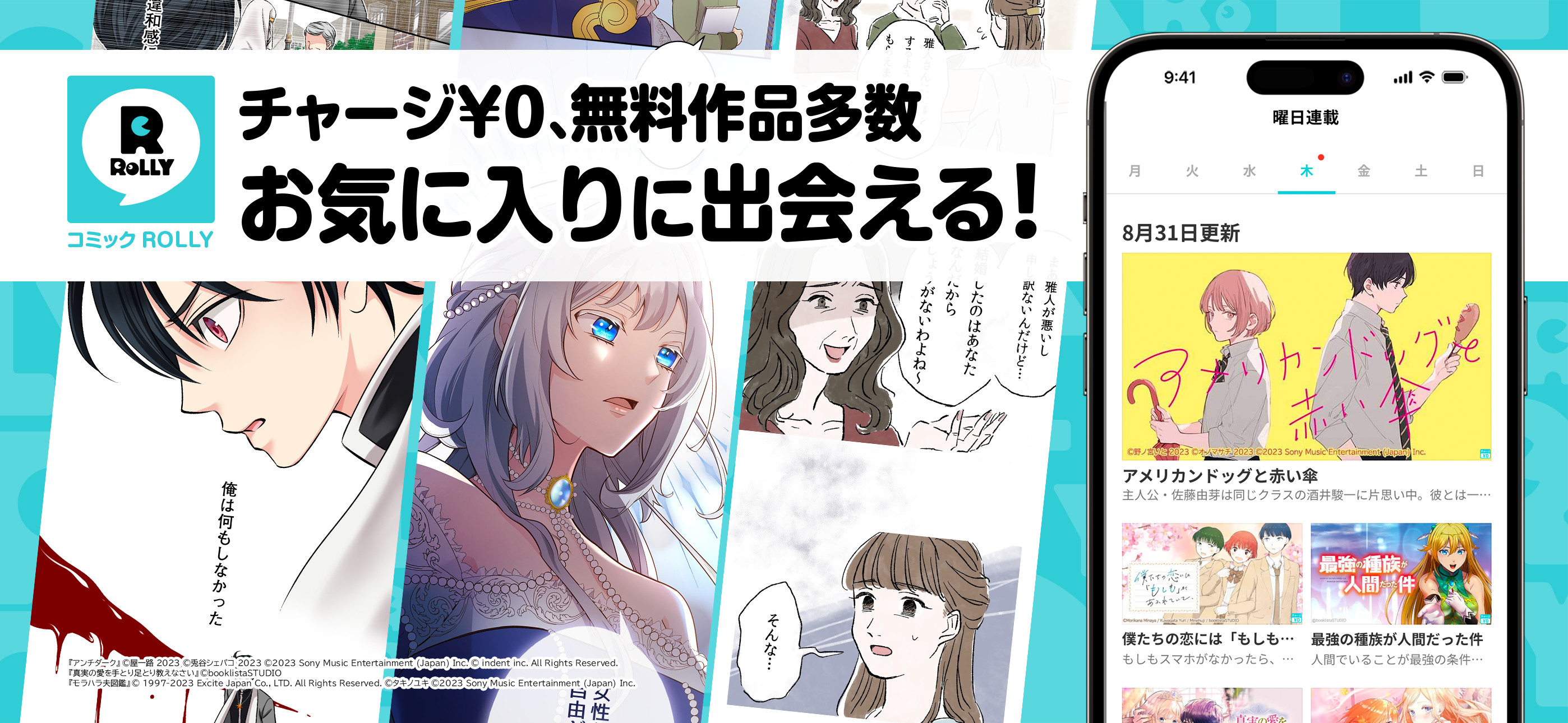 「コミックROLLY」は、アカウント連携なしでもコミックを読むことができます。23時間待つと次話が読める「チャージ¥0」により毎日無料で読める作品も多数ラインアップしています。