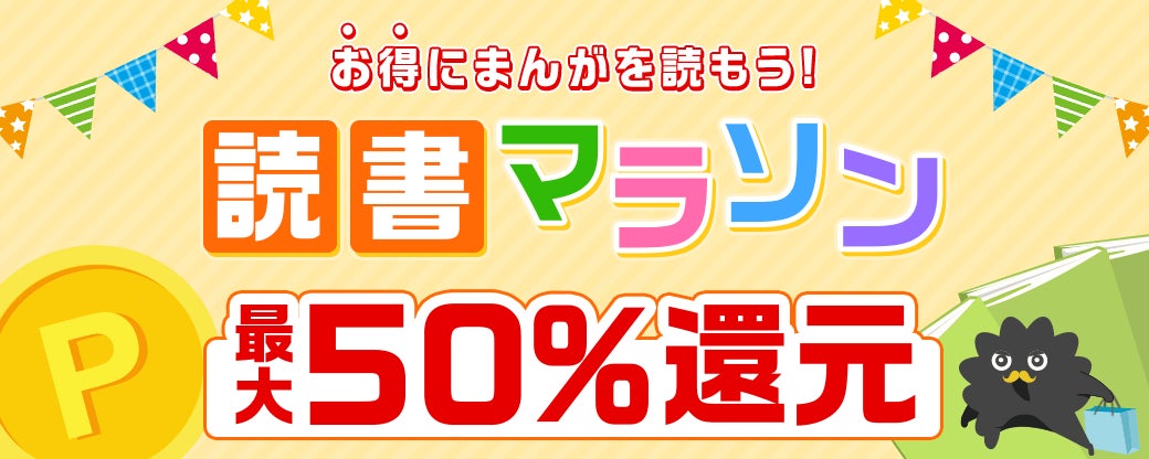 キャンペーン期間中に、エントリーして3作品以上の漫画を購入すると最大50%ポイント還元いたします。
