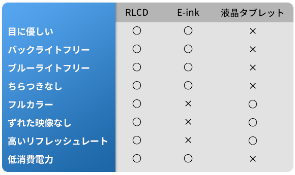 RLCDテクノロジーは、優れた目の保護機能、高い解像度、優れたカラー能力を組み合わせたテクノロジーです。