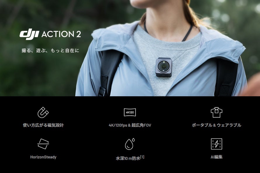 - 日常もアウトドアもスポーツも、すべてを捉えるアクションカメラ「DJI ACTION 2」