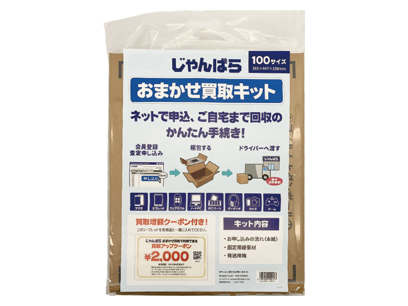 おまかせ買取キットは、じゃんぱらのオンライン買取サービス「おまかせ買取」でご利用いただける専用の梱包キットです。