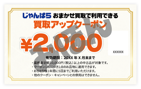 初回生産パッケージには10,000円以上の査定品に使える買取額2,000円アップするクーポンがついてきます。