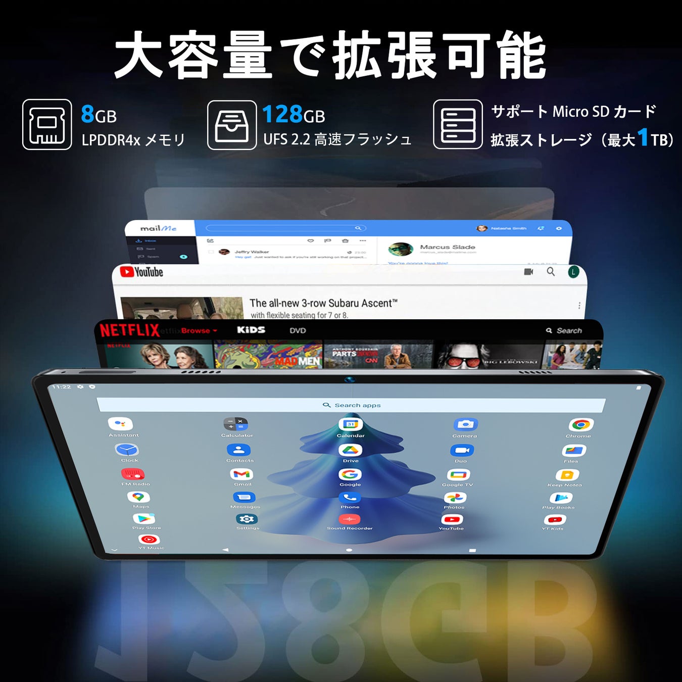 • 大容量メモリ(8GB+128GB+1TB拡張可能)