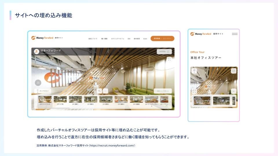 活用事例:株式会社マネーフォワード(https://tour.vachanavi.net/tour-man961e31c374716941d09254e42d6d6)