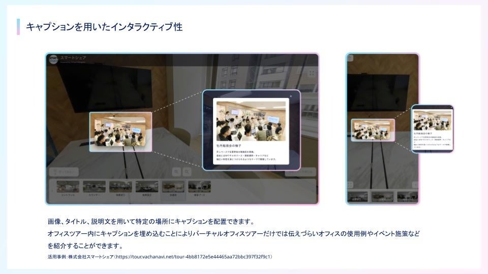 活用事例:株式会社スマートシェア(https://tour.vachanavi.net/tour-4bb8172e5e44465aa72bbc397f32f9c1)