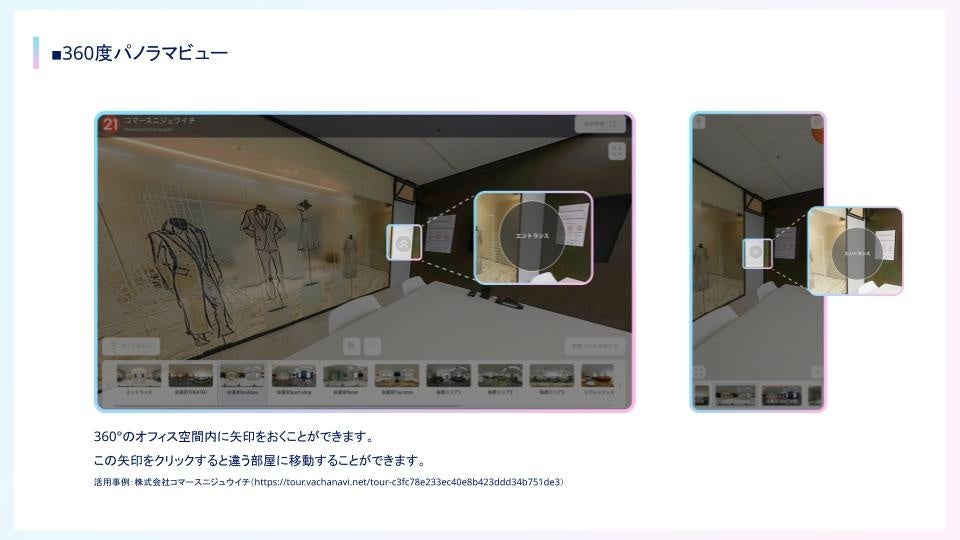 活用事例:株式会社コマースニジュウイチ(https://tour.vachanavi.net/tour-c3fc78e233ec40e8b423ddd34b751de3)