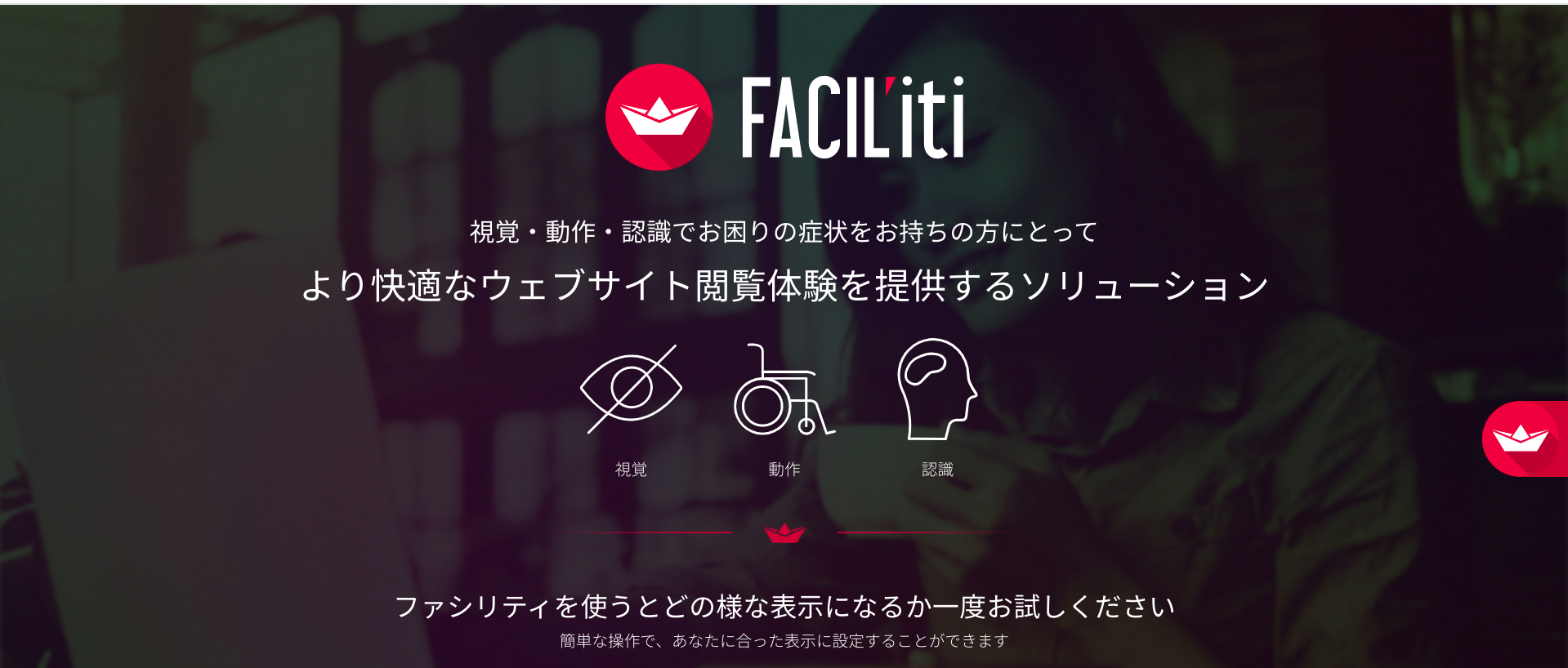 「FACIL’iti(ファシリティ)」は、仏のスタートアップ企業「FACIL’iti SAS」(ファシリティジャポンの本社)の一人のインターン生のアイディアから、フランスの障害者協会や各団体などの協力を得て、徹底したユーザーファーストのもと約5年の歳月をかけて開発したソリューションです。「FACIL’iti(ファシリティ)」は、ウェブサイトへ導入すると、ユーザーが自分に最適な設定でウェブサイトをパーソナライズ/カスタマイズして表示することができる、インクルーシブなウェブサイト、ウェブインクルージョンを実現します。