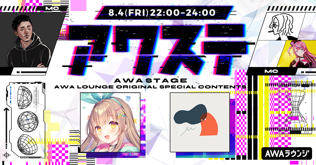 AWA株式会社(本社:東京都港区、代表取締役CEO:冨樫晃己)が運営する、サブスクリプション型(定額制)音楽ストリーミングサービス「AWA(アワ)」は、2023年8月4日(金) 22:00より、無料で誰でも参加できるオンライン空間「ラウンジ」で、ネットシーンを中心とした注目アーティストを毎回ゲストに招き、有識者であるMCとともにシーンの次のステージを切り開く新番組「AWAステージ(通称:アワステ)」の第5回を開催いたします。