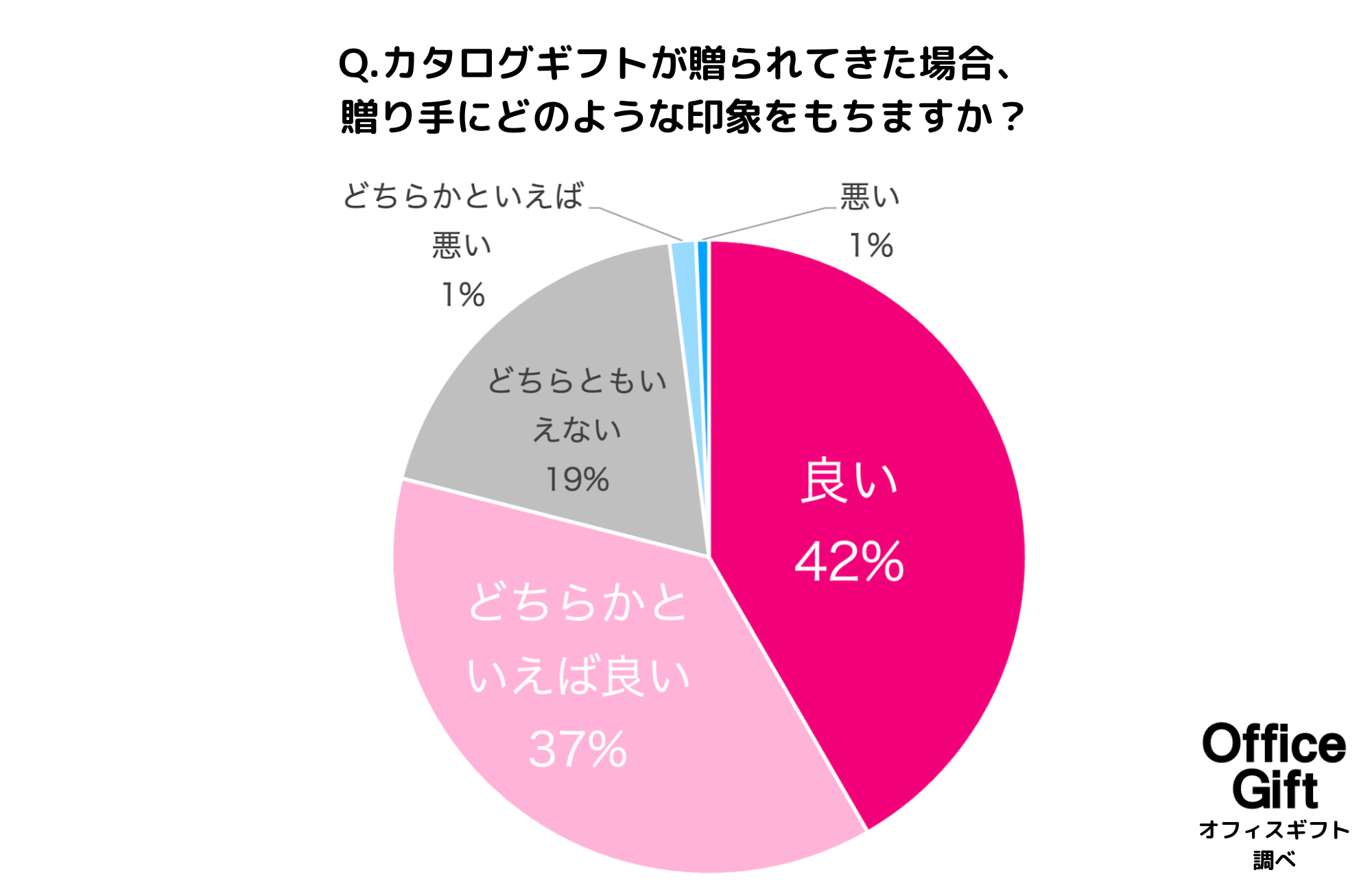 「カタログギフトが贈られてきた場合、贈り手にどのような印象をもちますか?」という設問に対し、7割以上が「良い」または「どちらかといえば良い」と回答しました。