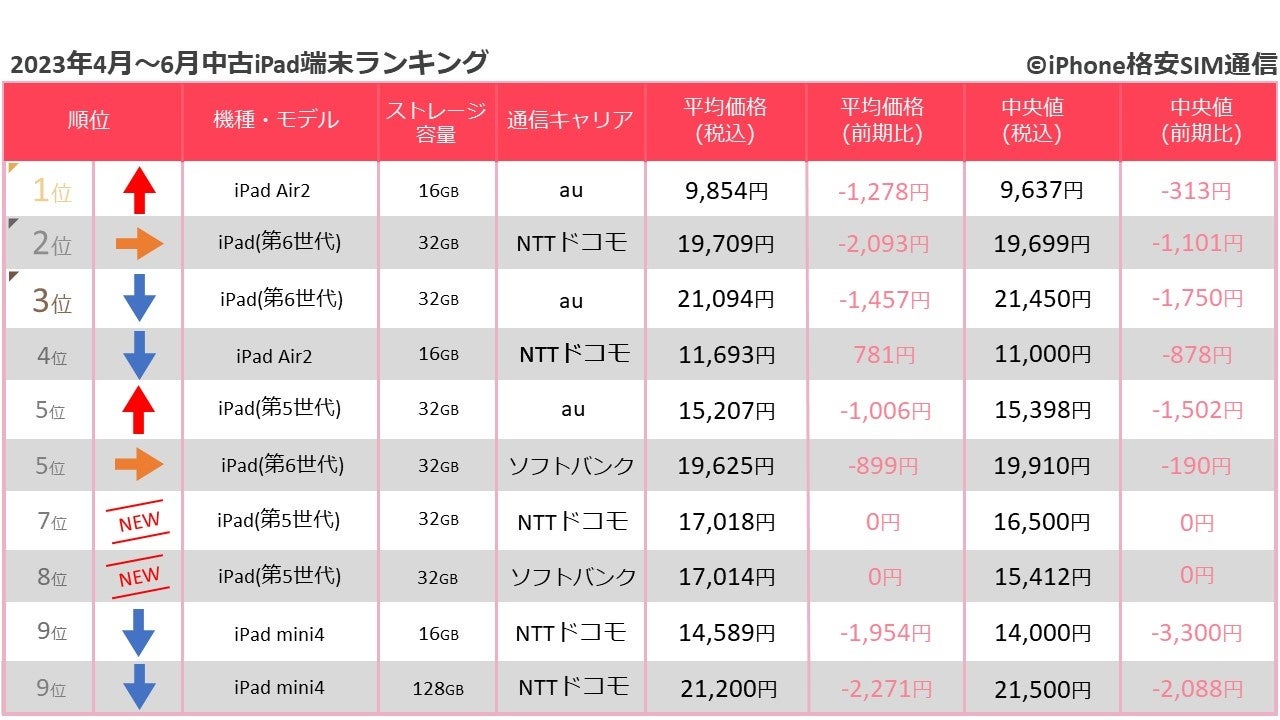 2.8年前に発売のiPad Air2が人気急上昇でトップに