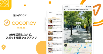 『coconey(ココニー)』は、ARナビによる新たな移動体験と、店舗や施設などの情報を共有するプラットフォーム型SNSの側面をもった、スマホ1つでお出かけをもっと楽しくするサービスです。