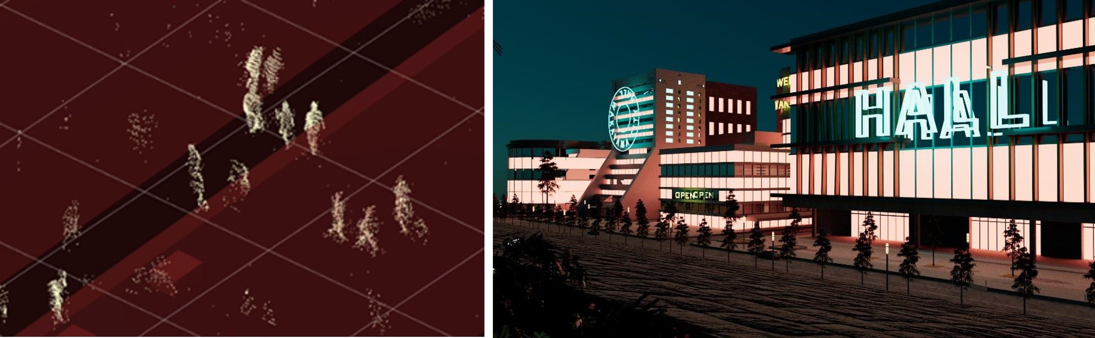 ① 3次元計測データを活用したデジタルツイン技術(*)による人のにぎわいの演出・配信