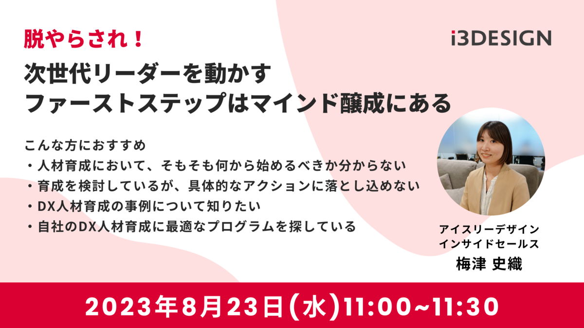 本説明会では、DX推進の現状と課題やDX人材に必要なスキルやマインドについて、またそれを実現する超実践型ワークショップ「ヒューマンイノベーションプログラム」をご紹介いたします。実際にご導入いただいているクライアント様の事例やアウトプットイメージもご紹介しますので、是非この機会にご参加ください。