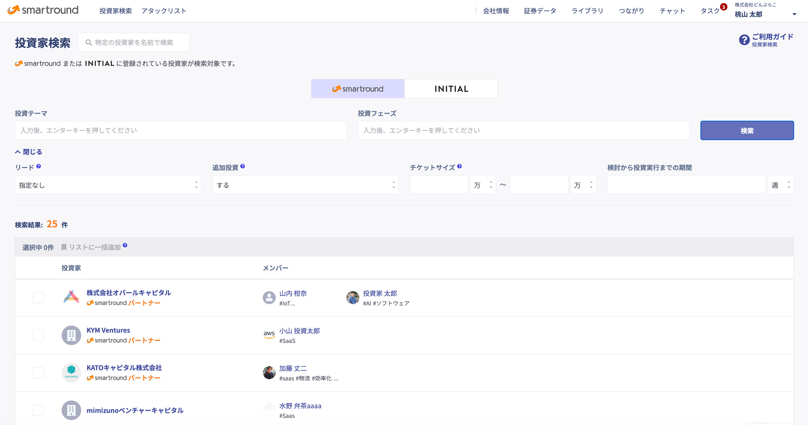 smartround、INITIALと連携して投資家検索機能・アタックリスト機能を同時リリース!