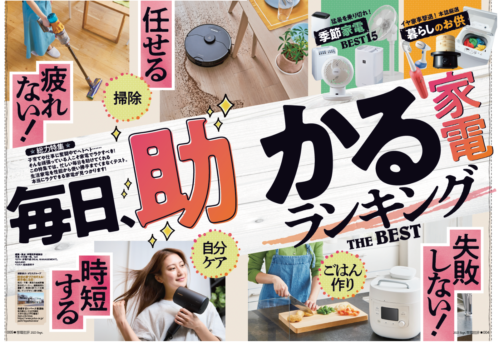 掃除や料理をはじめ日々の暮らしには、やらなきゃいけないことがたくさんあります。普段は学校に通う子どもが夏休みで一日ずっと家にいるとなると、用意するご飯の量やおかずの品数も増え、掃除や洗濯の頻度だってアップしがち……。子どもや家族の有無に関係なく、「ちょっとでもラクしたい」「ゆとりが欲しい」。そんな頑張っている人を助ける使命を帯びているのがズバリ家電です。本特集では調理と掃除を中心に、本当に助けてくれる家電をプロと探しました!
