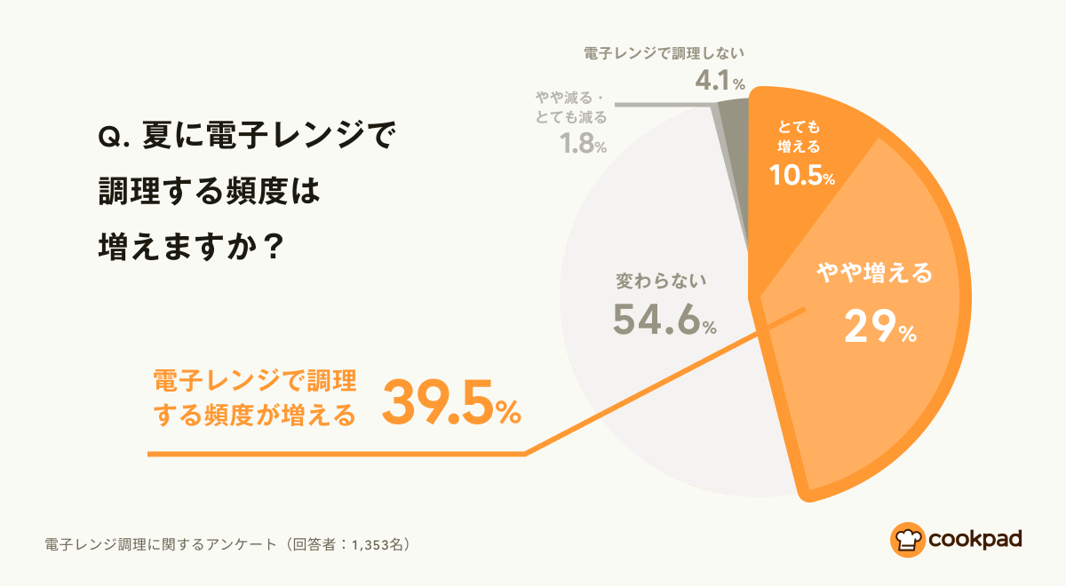 また夏に電子レンジで調理する頻度が増えるかという質問には「とても増える」「やや増える」と回答した人が39.5%という結果となりました。