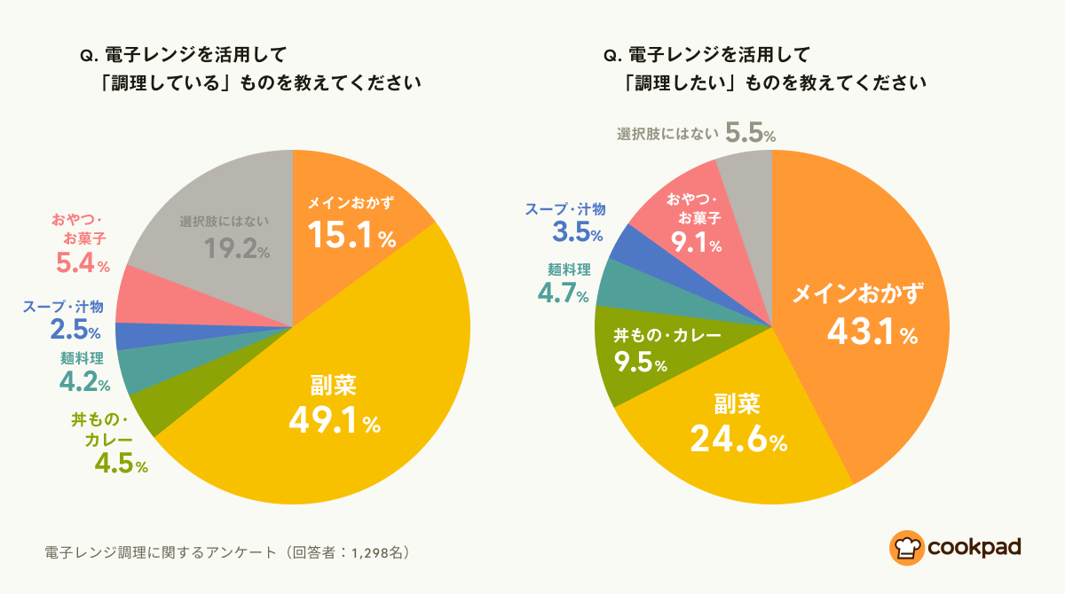 この調査結果を受け、クックパッドは人気ユーザーが提案する「おすすめ電子レンジレシピ」や「調理のコツ」の紹介などのコンテンツを発信する