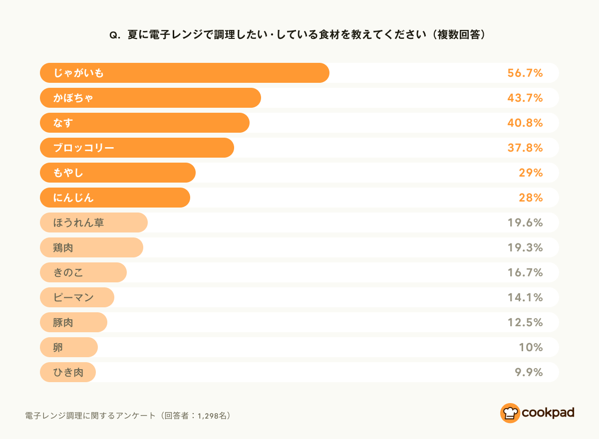 クックパッドが、夏の電子レンジ調理に関する調査を実施