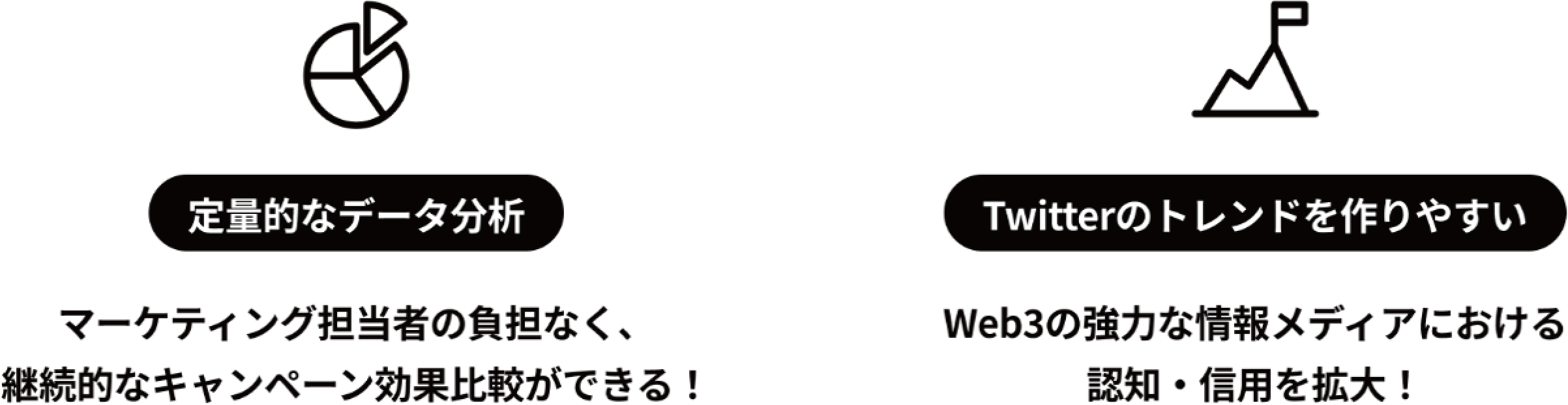 ソシャマは、コミュニティの力でトレンドを生み出せる唯一のマーケティングSaaSツールです。 X(旧:Twitter)での従来のフォロー&リツイートキャンペーン、インスタントウィンキャンペーンはもちろんのこと、ソシャマ独自のポイント式ハッシュタグキャンペーンの機能を提供。Discord分析機能によりコミュニティ運営を最適化し、ファンコミュニティのエネルギーを可視化するサイクルを実現します。
