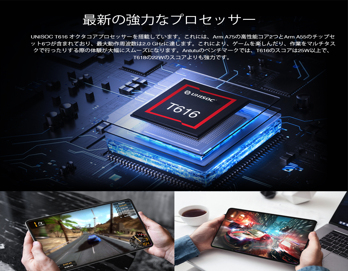 NPad Proは、最新のAndroid 12を搭載しています。Unisoc T616 8コアCPUにより、複数のアプリを同時にスムーズに動作させることが可能です。