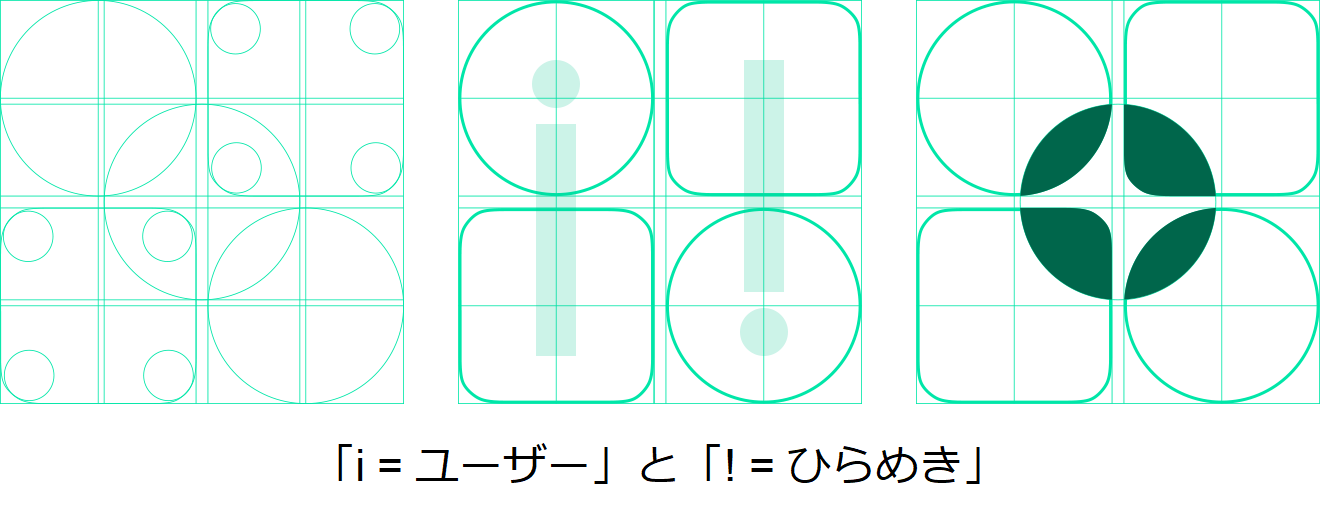 くふうカンパニーグループが目指しているのは、ユーザーの暮らしの中に今までになかった “ひらめき” を生み出し、新しい多くの喜びを提供し続けていくことです。ロゴマークでは “ユーザー” を「i」、 “ひらめき” を「!」に見立て、その中心にフォーカスして見えてくる形がロゴマークになるよう設計しています。