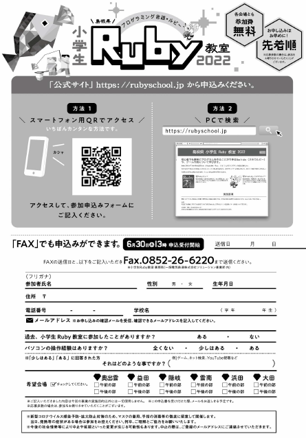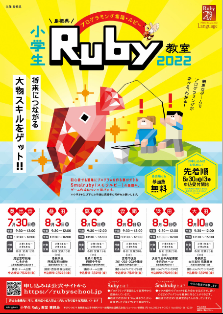 島根県では、小学生を対象としたプログラミング言語「Ruby」の体験教室を夏休みに開催します。