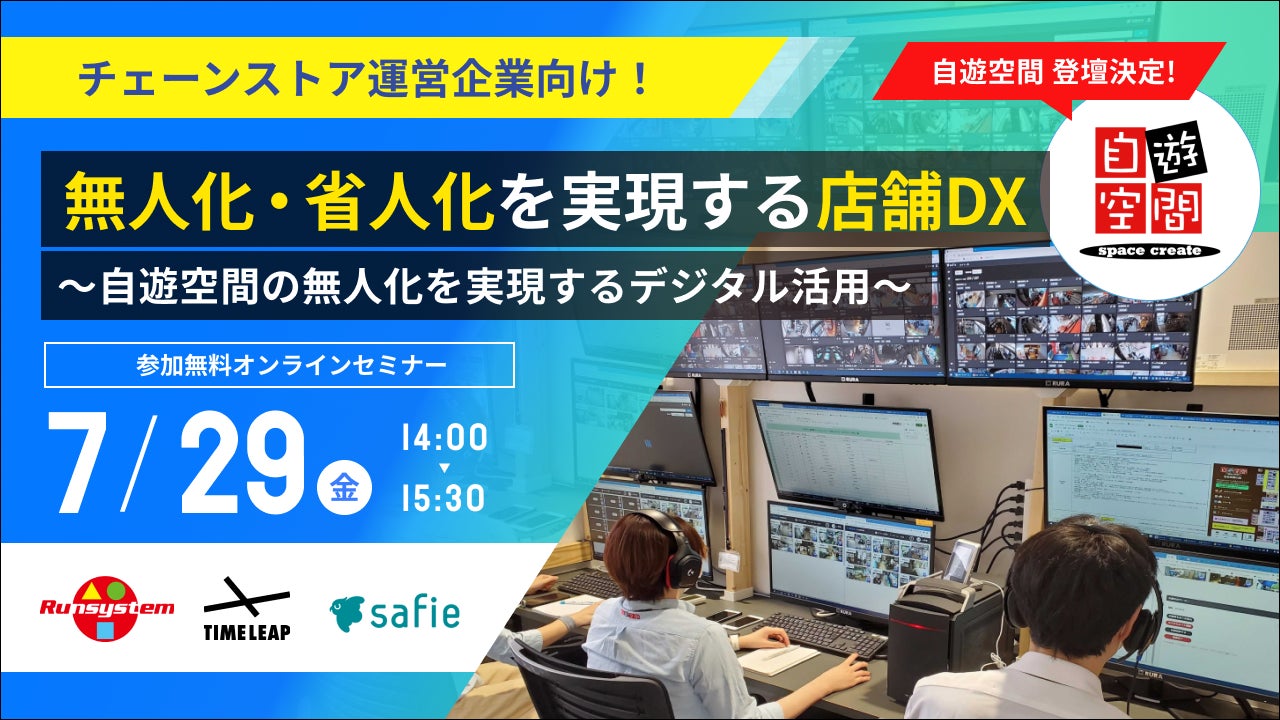 遠隔接客サービス「RURA」を提供するタイムリープ株式会社(東京都千代田区、代表取締役:望月亮輔、以下「タイムリープ」)と、クラウド録画サービスシェアNo.1(※1)のセーフィー株式会社(東京都品川区:代表取締役社長 CEO 佐渡島 隆平、以下「セーフィー」)は、デジタル活用による店舗の無人化・省人化の実現方法について事例を交えてご紹介するオンラインセミナーを、2022年7月29日(金)に共催することをお知らせします。