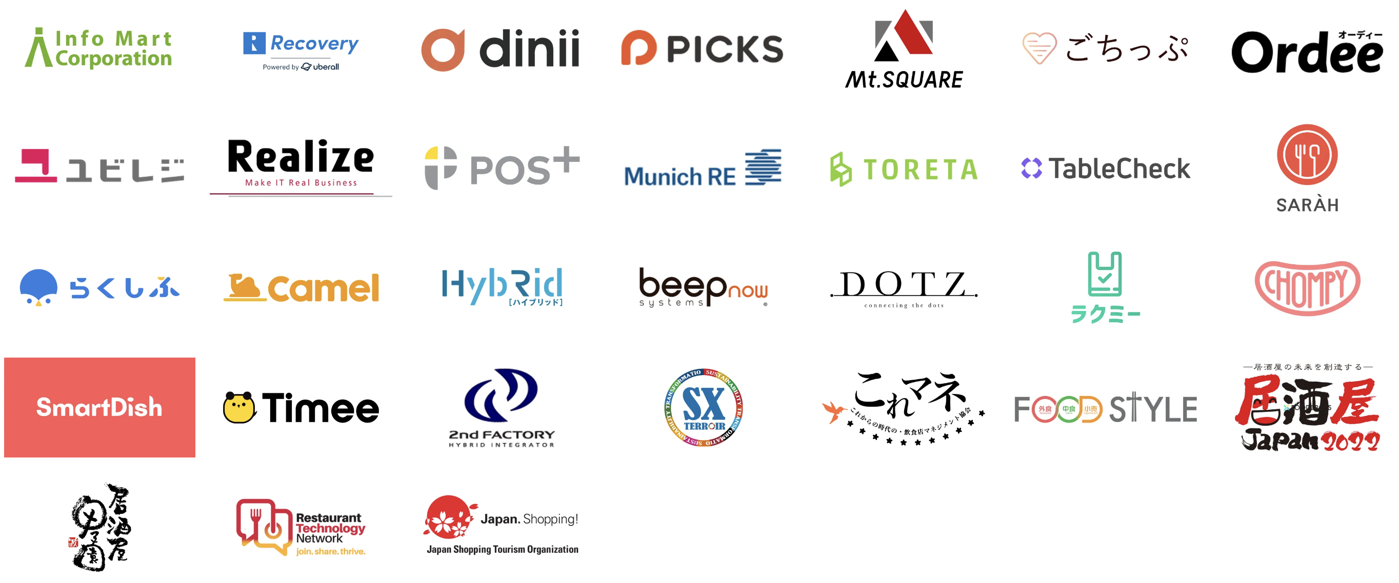 2022年7月時点で、賛助会員含む協力団体29社のご協力のもと、日本最大のレストランテックコミュニティを形成しています。
