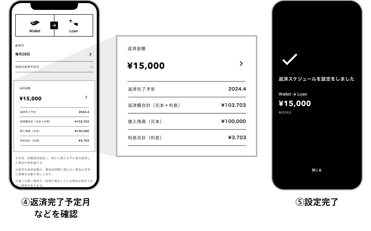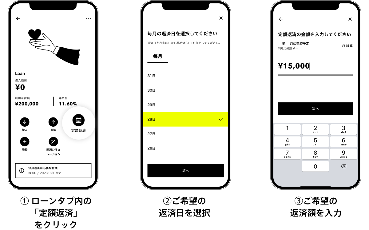 *3 毎月末日までにアプリ操作による返済が行われない場合、毎月末日に約定返済額をお客さまの返済用預金口座から自動引落しさせていただきます。