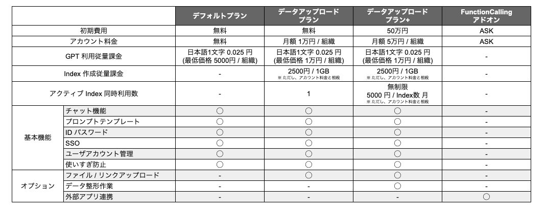 AI技術の進化がビジネスの世界に大きな変革をもたらし、その中でもデータの活用は、特に重要性を増しています。「JAPAN AI Chat(™)」のデータ連携機能では、企業の独自データをAIに学習させ、学習内容を基にした回答を実現する企業オリジナルのAIを開発することが可能です。しかし、従来のプランでは、データ連携機能を活用するためには最低100万円の予算が必要となり、少額の予算で試してみたい企業にとっては導入において大きなハードルとなっていました。