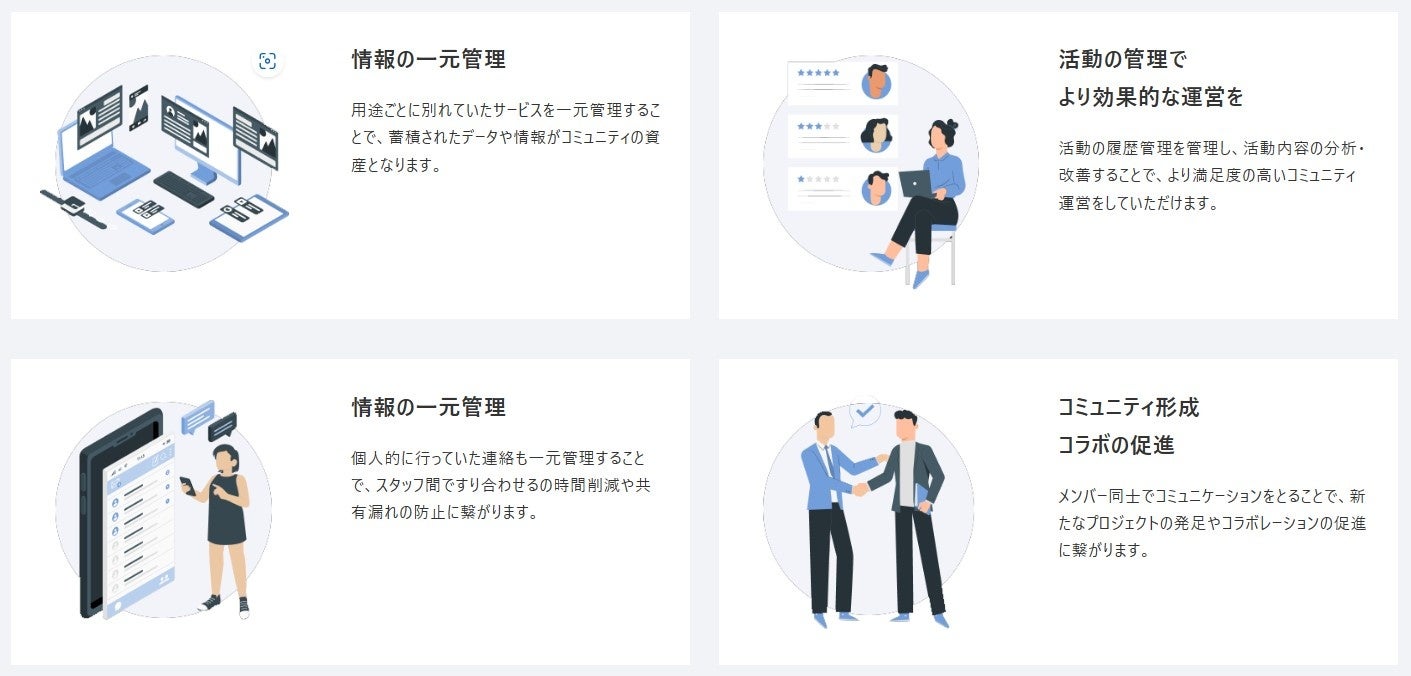コミュニティの価値を最大化するための機能やユーザビリティに徹底的にこだわり、お客様の声を真摯に受け止め随時改善・更新を行っております。また、新しい機能の追加も行い、日々アップグレードしています。