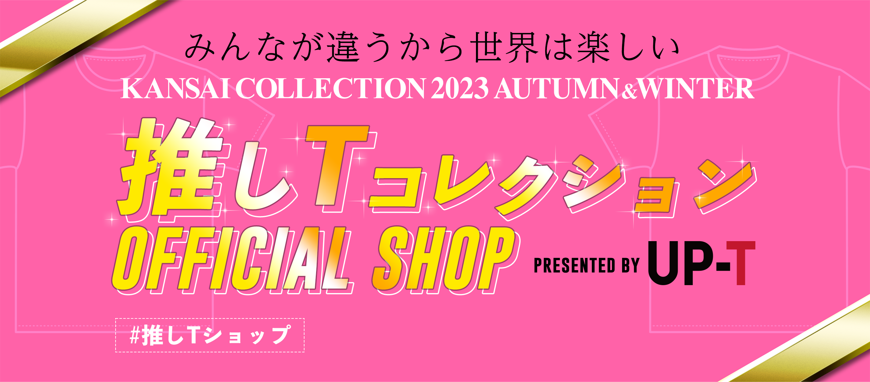 なお、UP-Tでは今回のKANSAI COLLECTION 2023 AUTUMN & WINTERへの出演を記念して、UP-Tステージを彩った推し活Tシャツが期間限定で販売されている。