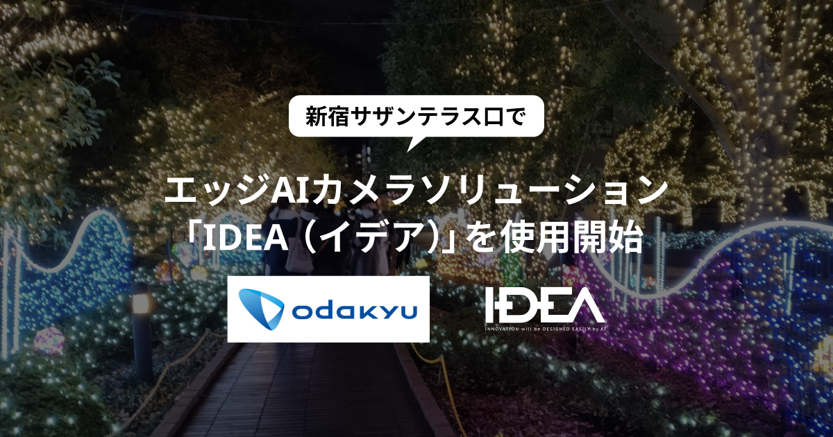今回の本格導入では、小田急電鉄が運営する新宿駅南口エリアの「新宿サザンテラス」のさらなる活性化を目指すべく、商業施設内における歩行者の人流解析を行う目的として、エッジAIカメラIDEA(イデア)を設置し、画像解析を行いリアルタイムで利用者の属性情報(性別・年代)や滞在時間等の利用状況を可視化し、調査・解析を行います。