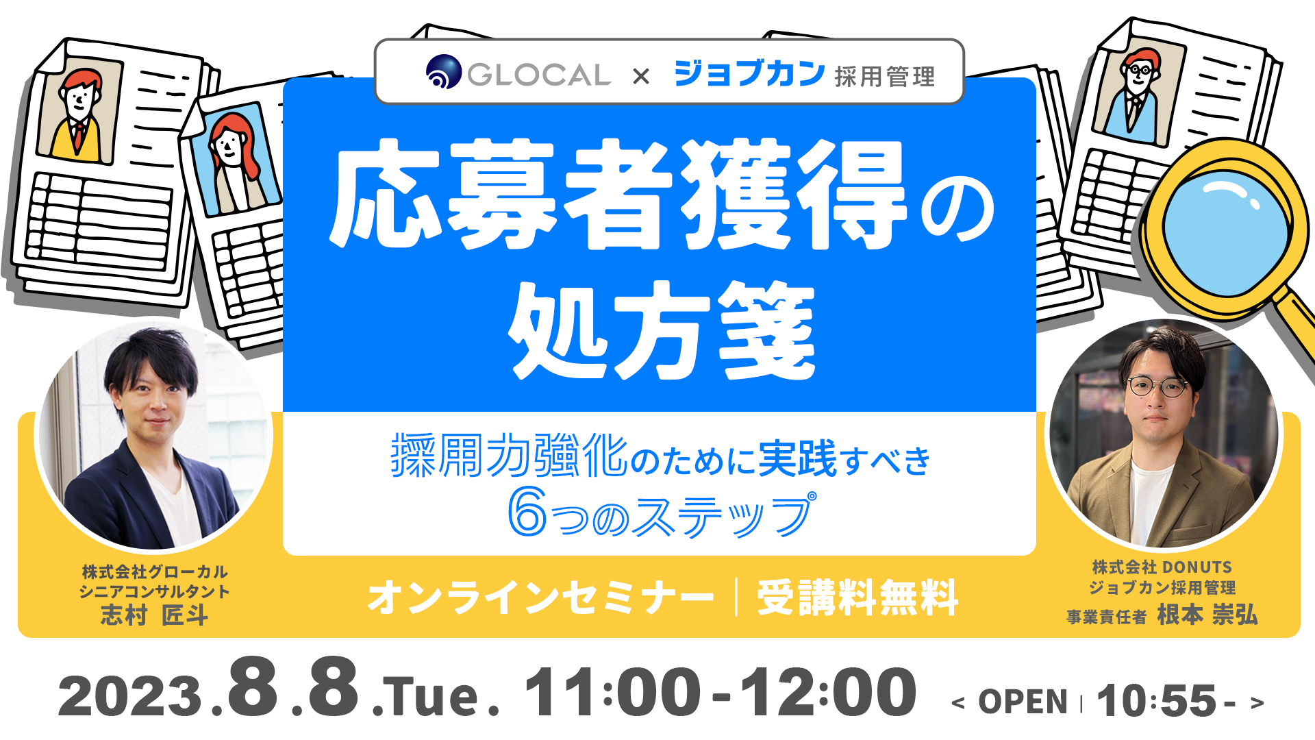 本セミナーでは、大企業と比較し、ブランド力や知名度が乏しい中小企業の採用戦略を数多く手がけてきた株式会社グローカルのノウハウを活かし、採用戦略の立て方を具体的な6つのステップで解説します。
