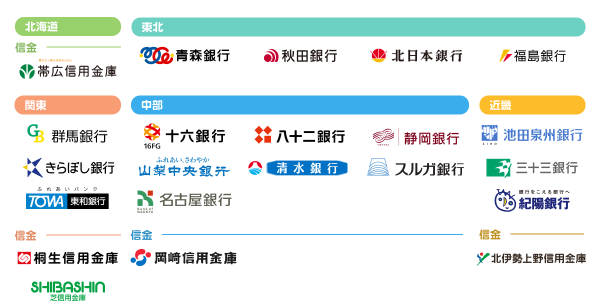 静岡銀行、きらぼし銀行、山梨中央銀行、清水銀行、紀陽銀行