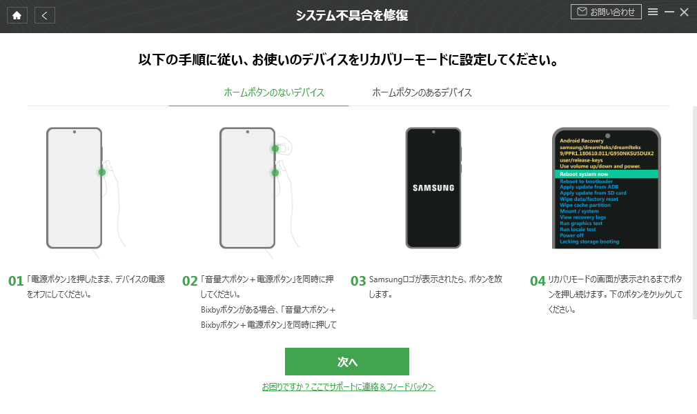 Step 3.画面の指示に従ってご使用のデバイスをリカバリーモードにします。