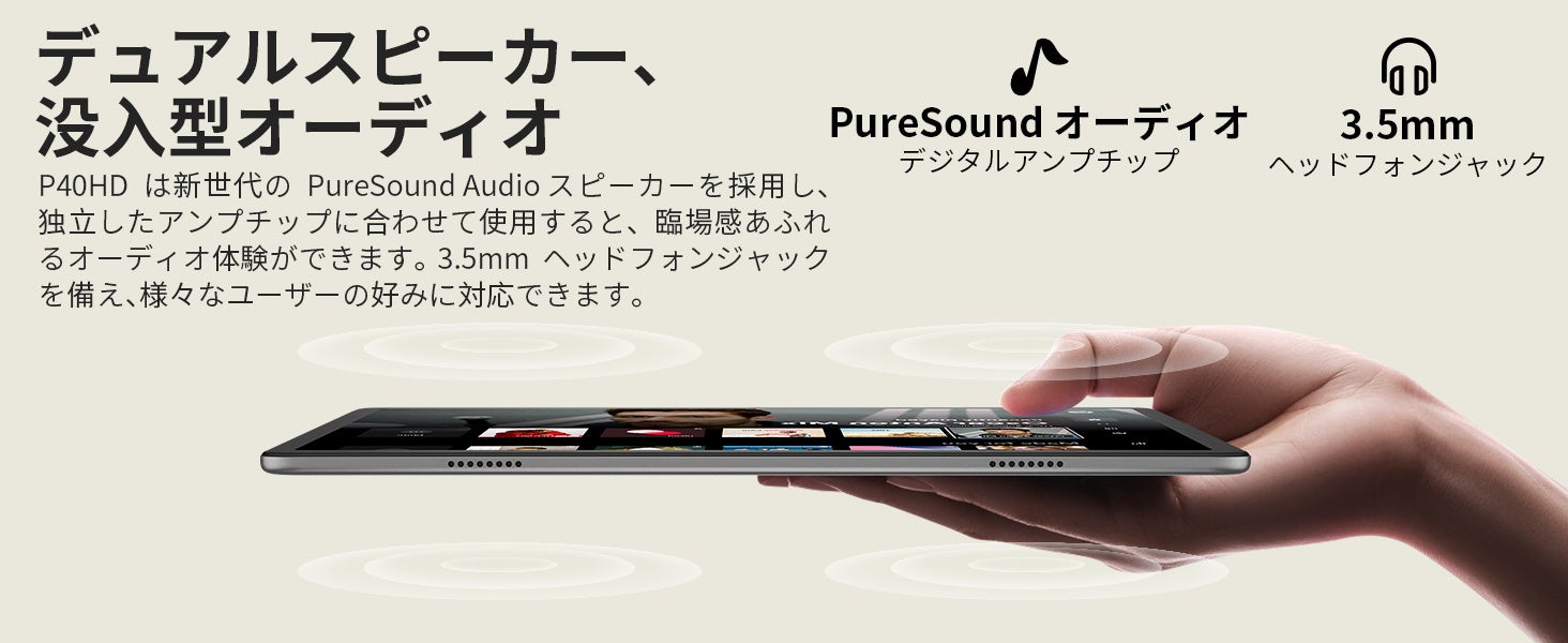 6000mAhの大容量リチウムイオン電池と低消費電力のプロセッサーにより、最大7時間のビデオ再生時間を実現しています。Type-C充電ポートも簡単で、正面と裏面を区別しない設計です。さらに、新世代のPureSound Audioスピーカーを採用しており、独立したアンプチップと組み合わせることで、臨場感あふれるオーディオ体験が可能です。さらに、3.5mmヘッドフォンジャックも搭載されており、さまざまなユーザーの好みに対応しています。